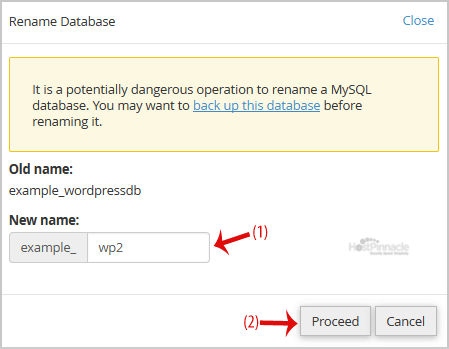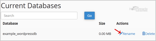 3. Under "Current Databases", You can see list of your all databases. Locate the Database and then click on "Rename" Icon.