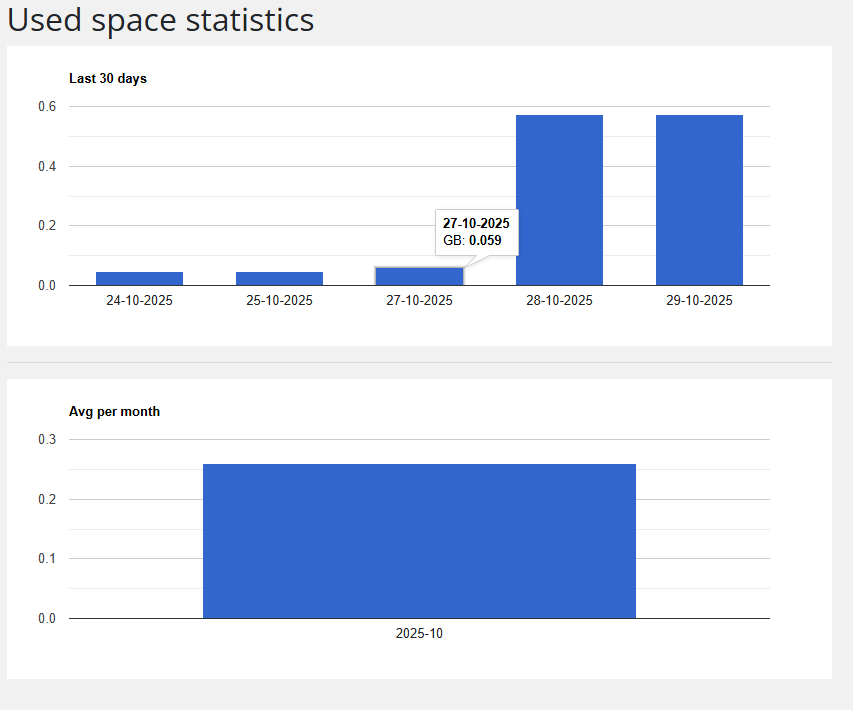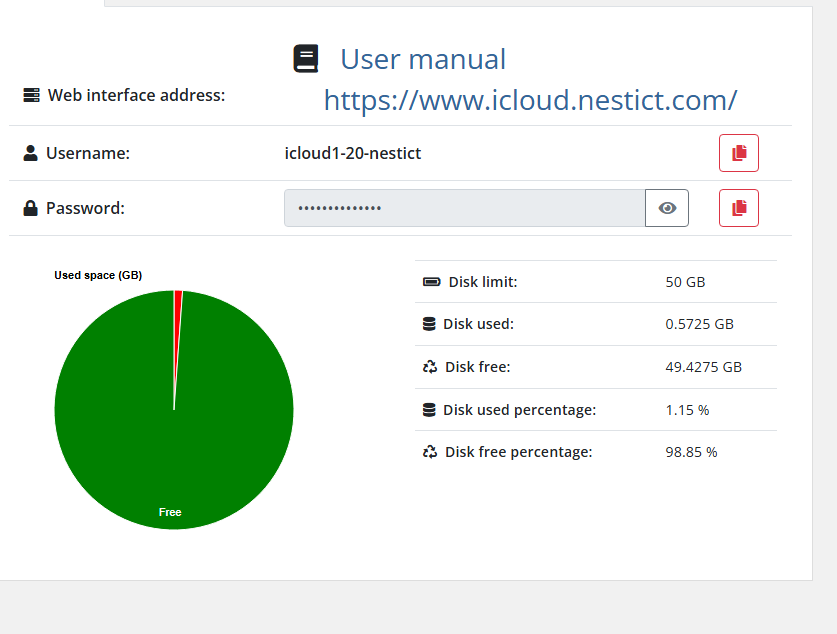 Example: 0.5725 GB used out of 50 GB (1.15%).